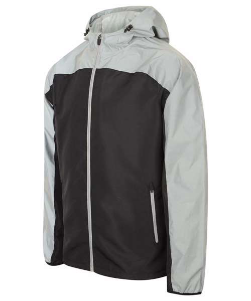 3 piece hood with adjustable drawcord and toggles. Reflective panel across chest, shoulder and sleeves. Showerproof and breathable fabric. Stretch binding at cuffs. Adjustable hem with toggles and drawcord. 2 x zipped pockets. All zips with semi-automatic zip sliders. Tombo tear-out label.