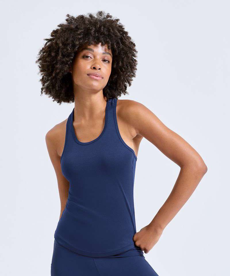 The women's TriDri® performance strap back vest features sweat-wicking fabric and a modified racerback with an elastic strap to help keep you cool and moving freely from your first set to your last.