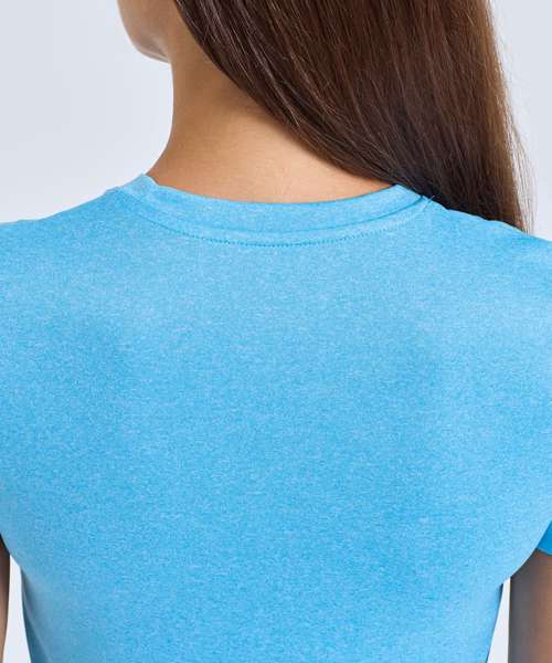 Wicking fabric. Stretch. Crew neck. Short sleeve. Lightweight. Twin-needle stitching on hem and arms. Recycled polyester. We recommend using block out vinyl and inks.Product contains no branded neck or waist label. Removable Kimble or looped garment tags. Inner seam label holds important product information on one label with a second label containing brand information which can be cut-away. UPF 40+.