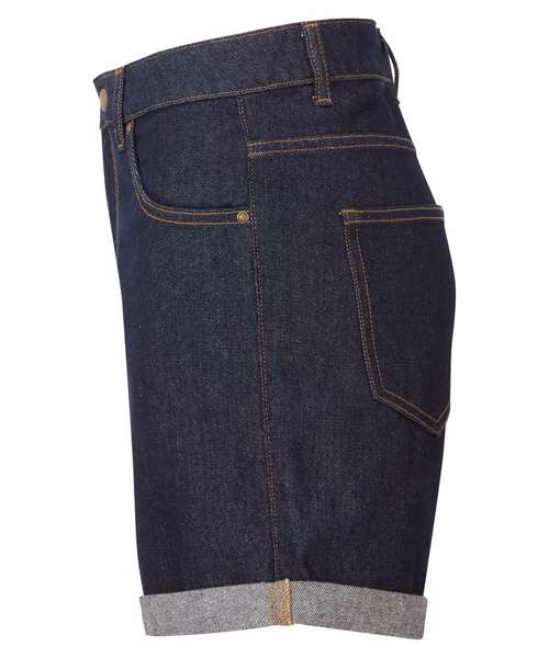 Two front pockets with coin pocket. Brass button and cap detailing. Two back patch pockets. Zip fly and button fastening. Washed denim effect. Contrast stitching. Belt loops. Shorts can be worn rolled up.